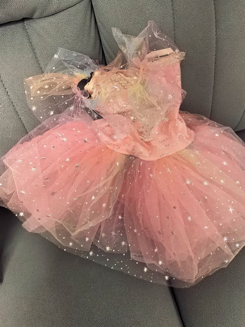 小朋友就上舞台表演时穿过,然后就洗了放着了,尺码:120,尺码标准,粉色。
